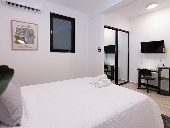 Move into a modern 1-bedroom, 1-bathroom apartment in the heart of Santurce. Recently renovated and furnished, this unit is designed for comfort and convenience. The building is equipped with solar panels and a water cistern, ensuring greater service stability. Just minutes from Sagrado Corazon, the Tren Urbano, and Ocean Park, enjoy the perfect location with easy access to everything. Apartment Features & Inclusions: - Living Area with Sofa Bed & Smart TV Perfect for relaxing or hosting guests. - Bedroom with Smart TV Enjoy your favorite shows in bed. - Air Conditioning in Both the Bedroom & Living Area Stay cool year-round. - Fully Equipped Kitchen Includes essential appliances and cookware. - All Utilities Covered Wi-Fi, water, electricity, and TV. - Monthly Cleaning of Common Areas & Basic Apartment Maintenance Additional services available upon request. - Private Balcony and Entrance - Rooftop Terrace with One of the Best Views in Santurce Perfect for relaxing or socializing. - Bathroom Essentials Provided Fresh towels, shampoo, body wash, and more. - Exclusive events & activities for residents. Ideal for entrepreneurs, professionals, and creatives looking for a dynamic, collaborative environment. Smoking is strictly prohibited in any part of the building. That includes all private and communal rooms, hallways, balconies, etc. If you choose to smoke, please make sure you do so away from the building entrance, and please make sure you dispose of cigarette butts properly. - On the weekday, quiet hours are from 10 pm to 7 am, and 12 am to 9 am on weekends. As with any shared housing scenario, the golden rule is to be respectful of others in your community and not wake them up or disturb them if they're trying to have a quiet night. Although we love all pets, we might have members with potential allergies, so, unfortunately, we can't allow people to bring pets with them. We want to make sure everyone can be happy in their communal home.