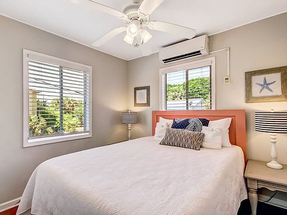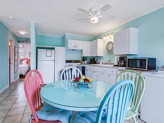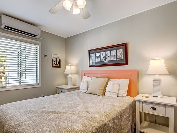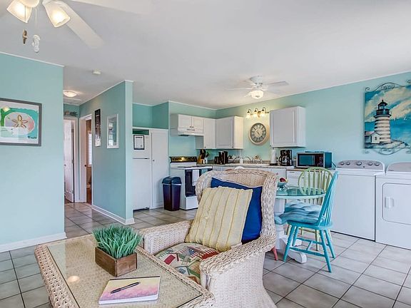 Welcome to this 2-bedroom, 1-bathroom open-concept condo, perfect for a relaxing beach getaway. Situated upstairs, you'll access the unit via exterior wooden stairs and enter through a front door labeled "B" using a digital keypad. The condo features an open-concept living room and kitchen, with a sofa bed, wicker armchair, and SmartTV. The fully equipped kitchen includes all essential kitchenware, and a table with four chairs provides seating for meals. Each bedroom offers a queen bed, and a full bathroom with a stand-up shower separates the two rooms. Enjoy easy access to the beach via a boardwalk across the street, and take advantage of off-street parking. The condo accommodates up to six guests and is family-friendly. This upstairs unit offers a cozy living space with a sofa bed, wicker armchair, and SmartTV in the living room. The fully equipped kitchen is ready for meal preparation, complete with essential kitchenware. A dining table with four chairs is available for meals. The unit includes two bedrooms, each with a queen bed, and a full bathroom with a stand-up shower. Access to the patio is through the living room, providing a relaxing outdoor space. Pets are welcome with a non-refundable pet fee. Pets must be crated when left unattended, and are not allowed on furniture or beds. All waste must be cleaned up from the yard. Additional cleaning fees will apply if there is evidence of pet hair on furniture, excess hair in the home, stains, or waste found in the yard or home. Located within walking distance of the beach and numerous restaurants, this condo offers convenience and leisure. Just a few doors down from The Sugar Shack, you'll find plenty of dining options nearby. While Uber, Lyft, and other taxi services are available, driving is encouraged for exploring the area. The condo is part of a home with three units, and you will have full and private access to your unit. Shared areas include parking and the yard. Check-in is contact-free via a digital door code, and you will receive the code upon check-in. Guests must be 21 years of age to book. A signed rental agreement is required. If there is evidence of pet hair on the furniture, excess hair in the home, stains, or waste found in the yard or home, you will be charged the cost to clean this.