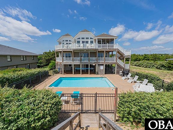 Opportunities like this rarely come along — a true oceanfront home on one of the most desirable streets in Southern Shores, set on over half an acre with panoramic views and private beach access. Located on 2nd Avenue, a quiet, elevated stretch of coastline beloved for its wide beaches and natural dunes, this 7-bedroom home sits on a 25,500 square foot lot and offers the kind of space, privacy, and setting that defines Outer Banks living. Every detail has been thoughtfully maintained and upgraded. The exterior features newly stained cedar shake siding, low-maintenance PVC trim, and vinyl handrails. Inside, you’ll find engineered hardwood floors, stainless steel KitchenAid appliances, and a reverse floor plan that brings in natural light and endless ocean views. The spacious great room opens to a screened porch and oceanside sundeck — and just beyond, a private dune-top deck takes you straight from the house to the beach. No roads to cross, no dunes to climb — just you, the sand, and the sound of the waves. An elevator adds convenience across all levels, and seven bedrooms offer flexibility for family and guests. The ground level also holds a designated office space and workshop. Outside, a heated saltwater pool extends the season, and an outdoor shower makes beach days even easier. With a strong rental history, enduring coastal style, and one of the most coveted oceanfront lots in Southern Shores, this is more than just a beach house — it’s the kind of property that stays in the family for generations.