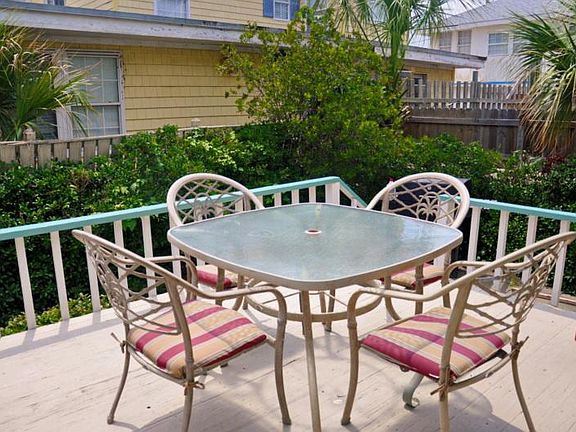 Ocean Views with ocean front patio. This two bedroom town house has ocean view and 3 balconies. There is also an ocean front patio. The kitchen is fully equipped. Each bedroom had a king bed and an ocean view balcony. There is a sofa plus a sleeper for your over flow guests. The is a laundry area in the unit. The back area is fenced and has a charcoal grilling area with table and chairs. Spring Special. Includes all utilities, cable and WIFI. Price Varies with length of lease. A vailable thru June 1