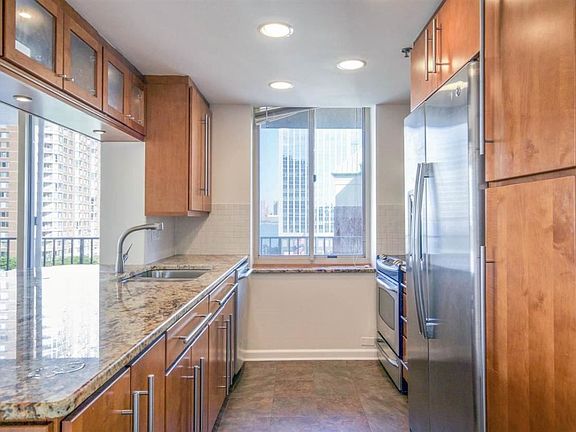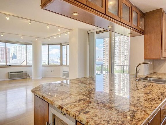 (Virtual / 3-D Tour Available) Welcome to a gorgeous 3BD/2.5BA unit at luxurious Portofino. This apartment is the perfect place to call home with views of Hudson River, mid-town and/or downtown Manhattan from every room and balcony. The apartment features open kitchen w breakfast bar, Granite counter tops, Stainless Steel Appliances, wine cooler, premium bamboo floors & enclosed Washer/Dryer. The Master Bedroom has 2 large walk-in closets and a private bath w designer fixtures. Portofino is a full service, pet-friendly waterfront building with 24 hr concierge, business center, gym, pool, tot-lot, community room, BBQ patio & seasonal shuttle to PATH. It has easy access to Newport Pavonia & Exchange Place PATH trains, Light Rail & Ferry. One parking is included in rent. Cable & High speed Internet is included in rent. Broker's fee is 1-month rent.