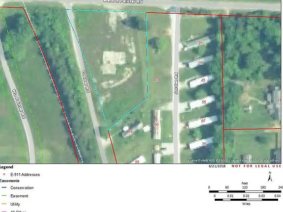 1.35 acre lot just off 501 on Weldon Painter Road in Timberlake. Level and mainly clear. Dobber's old garage was removed, the floor remains. City water at street.