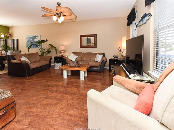 Price REDUCED and Seller is Motivated! Walk or take your golf cart downtown from this absolutely stunning and perfectly maintained 3 BR, 2.5 Bath home on a corner lot with awesome large lagoon views. This stunning 2 story home feels very private at the end of the street, has an open floor plan with a huge kitchen, new stainless appliances, gas stove and upgrades throughout. Enjoy the relaxing water views from your screened in porch or patio. Large fenced in yard is great for dogs.