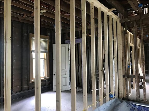 Ready for the finishing touches! This 5 bedroom 3 full bath home on a spacious lot has so much new and is ready to be your dream home. Seller has recently roughed in walls for an open floor plan featuring a large dining room, living room, modern kitchen with pantry space, first floor bedroom & full bath and a laundry room. Upstairs is a landing set up to add a small kitchenette/breakfast nook, Master bedroom/full bath with walk in shower & tub. There are 3 additional good sized rooms with closets and another full bath with hallway closet as well. New electric to new 200 amp panel as well as as 100 amp sub panel run throughout home. Plumbing is complete for entire home and is all new pex. All bathrooms are vented and hardwiring for smoke detectors is complete. High efficiency furnace heats first floor and electric runs have been added for baseboard heat upstairs. Newer roof. Wrap around porch overlooks oversized corner lot with space to put in off street parking.