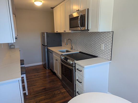 Be the first to live in this completely remodeled studio apartment with high end finishes throughout. Newly refinished Hardwood floors in all main areas, kitchen has quartz countertops and new stainless appliances including dishwasher, microwave stove and refrigerator. Deep newly refinished cast iron tub for soaking, and new tiles throughout. All new plumbing and electrical, and fresh paint. 1 parking spot included, on site laundry and so much more. Gorgeous apartment! Must have good rental references and no evictions. owner pays trash shared laundry tenant pays electric tenants splits gas and water bills 1/4 with other apartments. no smoking no pets