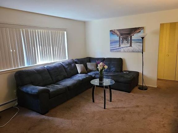 Spacious and Sunny one bedroom apartment with Large eat in Kitchen. Large living room, Large size Bedroom Walk in Closets Plenty of Storage Air condition carpeting off street parking, Great access to nyc and great school ratings. laundry facilities on site. Heat and hot water included. One and a half month deposit. Apartment available October first. Listed by owner no fees