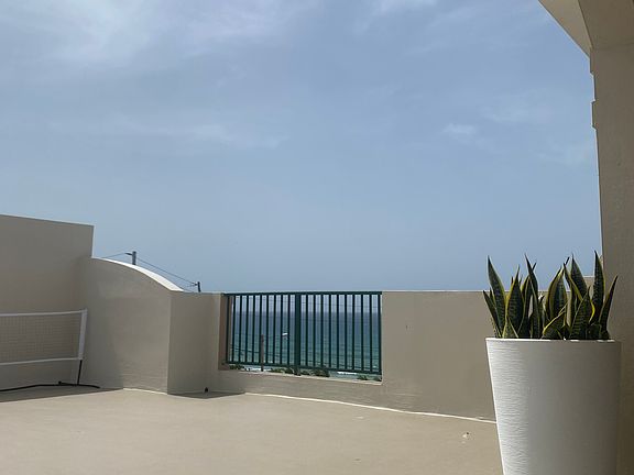 Penthouse apartment with roof top terrace and stunning views of the ocean out front and a nature reserve out back. This fully furnished unit has three queen size bedrooms and 2 bathrooms. The sundrenched living room overlooks the pool and the beach and provides the perfect place to regroup after a long day. The kitchen is fully equipped and there is an in unit washer dryer. Minimum lease is 6 months. Will lease for longer. Owner pays HOA. Tenant is responsible for water and electric.