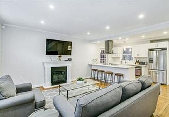 Conveniently located between E Broadway and E Third Street, this stunning first and second floor duplex is quietly nestled in one of the most popular areas in South Boston. A private entrance leads to a spacious & newly renovated 3 bed/1.5 bath home. The sun-filled open kitchen/living area includes an electric fireplace, a breakfast bar, quartz countertops, a farmhouse kitchen sink, brand new Whirlpool appliances, a wine fridge & custom wine rack. Step out into your own private/gated courtyard with plenty of space for entertaining. Upstairs you will find two bedrooms complete with custom closets & a large, brand new bathroom with marble floors & quartz countertops. Complete with a newer Trane heating/cooling system, in-unit washer and dryer, new windows, Nest thermostat, & 400+ ft of semi-finished basement storage space Water/sewerage paid by owner