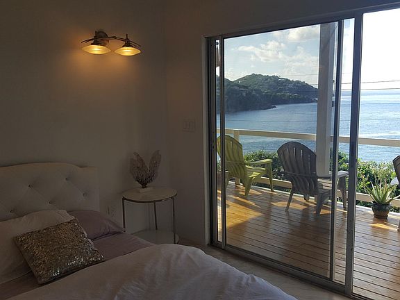 The OCEANFRONT LAVENDER PEARL ECO SUITE APARTMENT is for local residents. This oceanfront, unfurnished studio apartment has a full bathroom, kitchen, large closet, storage, bedroom/living room, and balcony with ocean views of STJ, STX, & STT. It includes water, Wi-Fi, and electricity. Our Oceanfront Lavender Pearl Eco Suite Apartment is located on the Point, close to Frank Bay Beach (a 3-minute walk), Frank Bay Pond nature preserve (a 3-minute walk), and town (a 7-minute). Peacocks, other wildlife, and our unique eco-friendly building complete your paradise experience. The monthly rental fee includes water, electricity, and wifi. We are a green building/ eco facility emphasizing sustainable living, energy use, and water conservation.