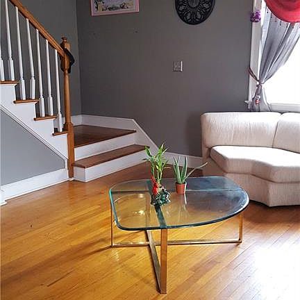 Great 4 bedrm cape with 2 full baths features: hardwood floors throughout~whirlpool tub & skylight in 2nd floor bath~partially finished basement~lots of storage~detached 2-car garage with loft storage. Near bus, train, downtown shopping and entertainment. Currently rented until end of May.