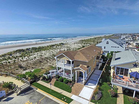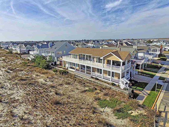OCEANFRONT, CONVENIENCE, COMFORT AND LOCATION MEET in this renovated, oceanfront home with 110 feet of ocean frontage with "take your breath away" ocean views. The upside-down design allows four bedrooms each with ensuite baths and a beautiful powder room to service the main living area. The home is protected by a beautiful, low rolling mature dune and raised bulkhead. The first floor has 3 bedrooms, 3 baths and den with direct access to a wonderful east facing deck overlooking a beautifully landscaped yard. There is a fabulous three season room on the south side of the home with ipe flooring that also overlooks the yard and dunes. The second floor, vaulted great room has sensational views, Brazilian cherry floors, a wall of glass allowing beautiful natural light and direct access to an expansive east facing deck, built-ins, beverage center with refrigeration, large wine chiller, ice machine and premium coffee service. The chef's kitchen has a Wolf cooktop, Wolf double oven, sub-zero fridge, two sinks, dishwasher and dishwasher drawer. The kitchen has a large center-island, pot filler faucet and a beautiful custom tiled backsplash. The great room has direct access to a dramatic, covered porch with wood ceiling and gorgeous ocean views. The south-side master bedroom has an ensuite bath and direct access to a large, oceanfront deck with sensational views and a spiral stair to the first floor. The home has a maintenance free vinyl shake exterior, stone faced foundation, long driveway with ample off street parking and a large storage shed in the rear. Other special features include a beautiful trim package throughout, distributed audio and mostly storm resistant windows on the east side of the home! The property is sold tastefully furnished. You will certainly enjoy the direct access to the beach as well as the comfortable stroll to town. Owners say they rarely use their car once they arrive.