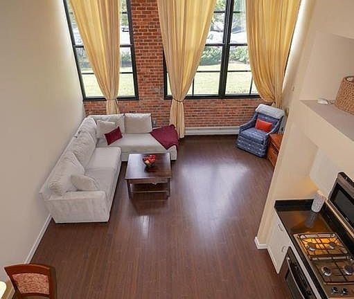Rare opportunity to own an amazing loft-style condominium in desirable Aberdeen Way complex! Filled with natural light through the wall of windows showcased by exposed brick, this one bedroom, two full bathroom unit features soaring fifteen-foot, wood plank ceilings and an open floor plan with easy flow through the granite/stainless eat-in-kitchen and the living area. First level, with richly stained bamboo floors, also includes an office/dressing room with lots of built in storage, a full bathroom, and the in-unit laundry closet. The loft bedroom with en suite bathroom has gorgeous wide pine floors and a custom built closet. Professionally managed, pet-friendly building has high owner occupancy and strong reserves. One car deeded parking. Lush landscaping provides a taste of nature in this convenient urban setting near Fresh Pond, bus lines to Harvard Square, shopping, restaurants, and all that Cambridge has to offer.