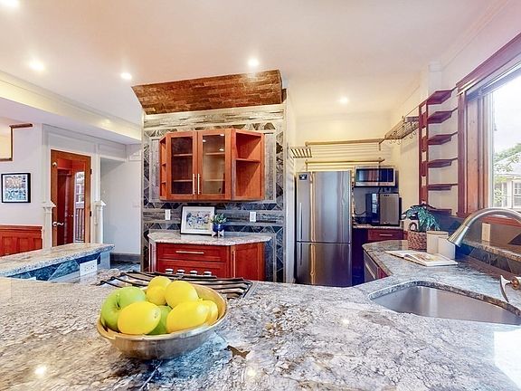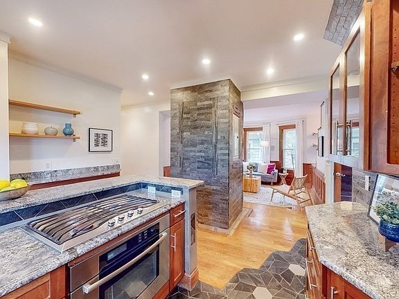 Trendy chic 2 bedroom oasis on a quiet cul-de-sac just steps from lively Centre Street in JP. This condo features 2 off-street deeded parking spaces, central air, 2 private decks, gas fireplace and a built-in surround sound system. The inviting open floor plan boasts hip, one-of a kind details and tile work. An updated eat-in kitchen has stainless steel appliances, granite countertops, and hardwood cabinetry. The primary suite has plenty of space for sleeping, unwinding with a built in media center, or relaxing on the private deck. Step through the walk-in closet to the custom bathroom with stone tiling and frameless shower. The second bedroom comes installed with a Murphy bed for guests and the main bath is adorned with contemporary fixtures, a walk-in shower, drop-in tub and Carrara marble tiles. One of a kind finished laundry area and workshop downstairs. A quick walk to the Arnold Arboretum, Orange Line, and all the restaurants/shops that Centre Street has to offer.