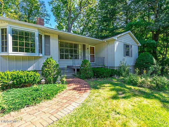 Sprawling ranch with partially finished walkout basement. Hardwood floors. Large kitchen with center island. Breakfast nook with bow window and ample built-in seating and view of double sided fireplace. L-shaped dining room and living room with fireplace open to sunroom. Two bedrooms on one side of the house sharing a full bath. Partially finished basement with walkout, possible bedroom and full bathroom. Sit on the front porch or inside enjoy the surroundings from the many large windows. House generator.