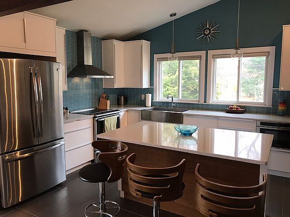 NIANTIC MODERN: Stunning, open, fully remodeled 3 BR, 3 BA, 2,040 SF pet-friendly home. Enjoy a prime location on a cul-de-sac street that is close to everything: Blue Ribbon Schools, shopping, and the seaside village of Niantic just 1.5 miles away. Our favorite feature of this home is the huge, open great room with cathedral ceilings, exposed-wood beams, and wood-burning fireplace. The bright, spacious kitchen with large island and breakfast bar features new cabinetry and maintenance-free quartz countertops. All 3 full bathrooms have been renovated and modernized. A bonus room off the kitchen offers an option for a 4th bedroom. This unique home offers seasonal views of Gorton Pond. Easy access to I-95 for commuters. The home has an oversized 2-car garage and large pantry. Qualified buyers only, 3% to buyers' agent.