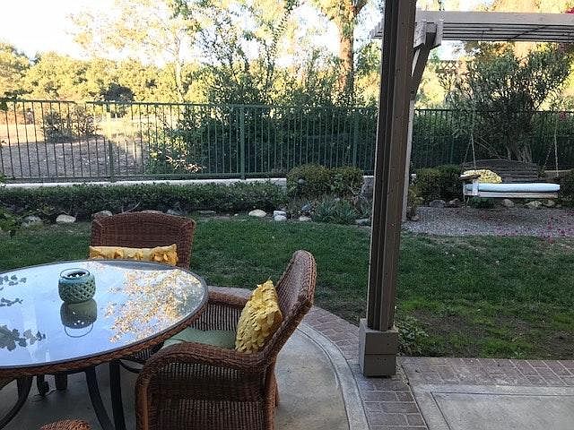 One dog considered with deposit. Walking distance to Las Flores Elementary/Middle School. Great neighborhood and wonderful layout. Very spacious! Beautiful hardwood floors throughout the downstairs. Former Model home! Great storage in the garage with built-in cabinets. For sale: furnishings, stainless fridge, W/D. Will consider renting furniture One dog ok with deposit. No smoking, good credit. will consider multi-year lease
