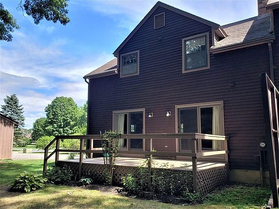 Move right in to this well-maintained two bedroom townhouse in the Commons of Deerfield. Features include an open floor plan, wood and tile floors throughout, a gas fireplace to keep you toasty in the winter, 1st floor half bath, and replacement sliders out to a private deck. The kitchen has granite countertops, new stove, and plenty of storage icluding a pantry closet. Upstairs you'll find two bedrooms with wood floors, a walk-in master closet, and a full bath. The basement is equipped with built-in shelves, along with the washer and dryer, and a wood stove. The detached 1 car garage is conveniently located right next to the unit.