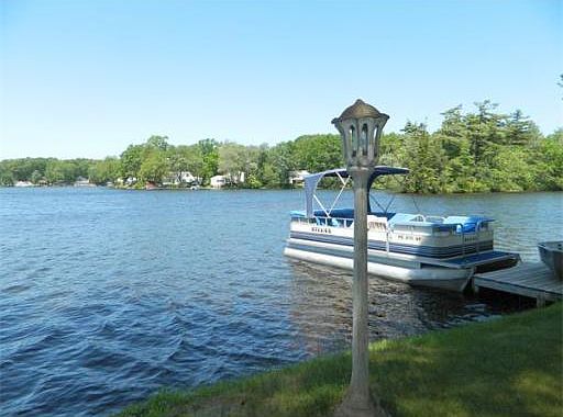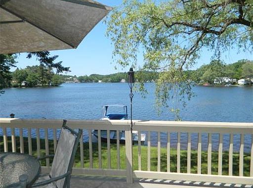 Spring has arrived .. Views from all over this property & facing east to west beautiful sunset. Updates include Hickory kitchen cabinets & flooring..Bathroom..Fireplace living room with access to garage and patio. Huge 12x 36 ft deck over looking manicured back yard. And over 200 ft of frontage on the lake .New boiler ~~ Nice back up generator.