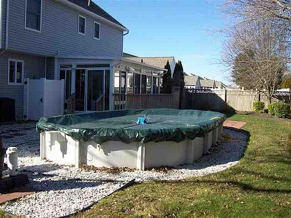 Welcome to one of the few center hall 2 story colonials in Tranquility. The house was built in 2003 and offers 4 large bedrooms, 2 1/2 baths, 2 car garage, gas fireplace in the living room, a formal dining room, a fully equipted large eat in kitchen and a 13x21' carpeted 3 season rm. with space heater, S&S, and acess to kit., liv. rm, and yard. The yard has a 52" deep by 12x24' partially recessed above ground pool with new filter and cedar fencing. There is an outside shower, a natural gas grill, 8x11' storage shed and sprinkler system. The central air was upgraded in 2011, the hot water heater 2012 and the 2nd. fl. hall bath 2011. There is a lift in the garage to allow access to kitchen without taking steps. Also a chair lift from hall to 2nd. fl. can be removed if buyer requests. All of the bedrooms are large. Laundry is on 2nd. fl. Powder room off kitchen, eating area has built in buffet, microwave, refr. dw, disp. along with freezer, shelving and fridge in garage.