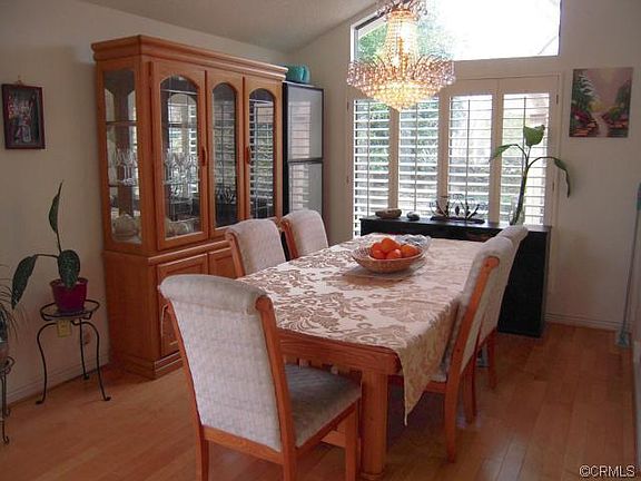 Located in Highly Sought After Neighborhood-Light & Bright w/Maple Floors Throughout, Window Shutters, Maple Stairs, Kitchen w/Granite Counters, Flat Electric Cooktop, Stainless Steel Double Sink w/Water Filtration, Garden Window, Breakfast Nook & Pantry, Step Down Family Room has Brick Fireplace, Wet Bar & French Double Doors w/Operable Sidelights that Open to Private Backyard, Spacious Master has Closet w/Mirrored Sliders, Ceiling Fan & Window Blinds, Master Bath w/Walk In Closet, Dual Vanity, Large Tiled Shower, Secondary Bath has Tub/Shower Combination, Private Backyard has Hardscape Patio, Raised Planter, Grassy Area, Patio Cover, Short Walk to Super Association Amenities Including Junior Olympic Size Pool, Spa, Tennis Courts, Tot Pool, Tot Lot, BBQ's & Clubhouse, Down the Street From Award Winning Santiago HIlls Elementary School, Short Walk to Award Winning Sierra Vista Middle School & Prestigious Northwood High, Close to Hicks Canyon Wooded Trail, Parks & Shopping, Association Dues $85/Mo., Low Tax Rate, No Mello Roos