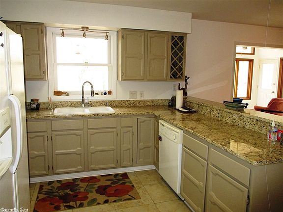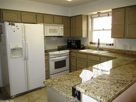 Sweet one level home with Lake DeSoto view- Nice Arkansas Room and large back deck. Recently upgraded with wood look tile flooring throughout, new paint, faucets, fixtures, tub/shower insert in guest bath- Master bath has free standing tub, shower, new toilets and vanities in both baths. Heat pump 2021, Roof in 2006, Painted Cabinets, French Doors, Granite Counter Tops, New Window Blinds, Stone Fpl, Bonus Room with outside entry under home, large deck. 2 Car Garage with lots of built in storage cabinets.