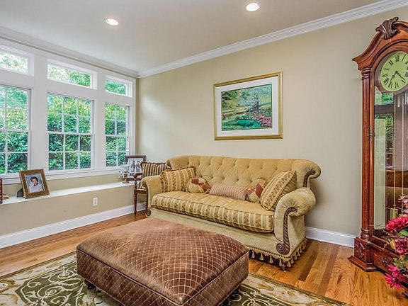 Spacious custom colonial situated on secluded park like lot with pool. Open floor plan, high ceilings and hardwood floors create inviting and entertainment friendly living spaces. Kitchen with custom cabinetry, island, granite, stainless steel appliances and large table space leading to patio for outdoor dining. Family room with gas fireplace. Formal living and dining rooms plus butlers pantry. First floor bedroom/office with adjacent sunroom and full bath. Huge master with sitting room and private deck. Finished basement and more.
