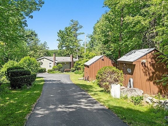 Year round, waterfront, and tons of privacy!! What more could you ask for? This beautiful home offers three bedrooms, the main with a full bath and fireplace, a large country kitchen with breakfast bar/island, formal dining and living rooms, a bonus entry room, and an absolutely wonderful family room built for entertaining and relaxing with it's woodstove and beautiful custom built bar. Located on a private road, away from traffic, you will find peace and tranquility with a nicely landscaped yard, multiple decks and seating areas, 3 storage sheds, a covered patio which doubles as a carport in winter, and of course, 151 feet of water frontage with deck, sandy area, and fire pit. This well maintained property offers year round fun on the sunny side of Queen Lake in the quaint town of Phillipston.