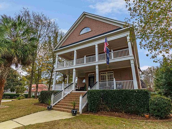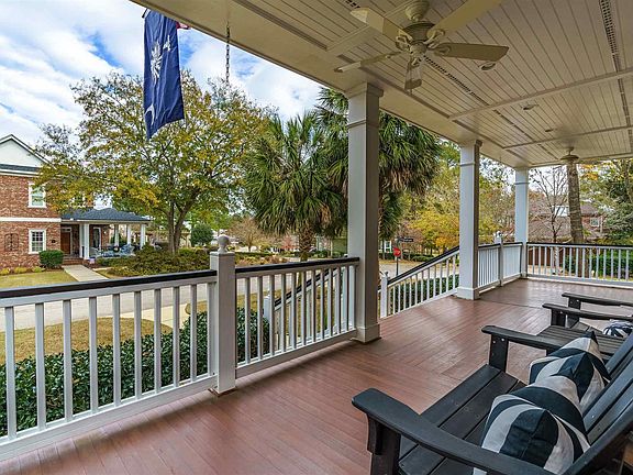 A home with true Southern Charm. This Antebellum style custom built, all brick, 4 bedroom home is situated on an exquisitely landscaped corner lot, adorned with 3 mature Palmetto trees in the much sought after Cobblestone Park. The charm only begins with the 2 levels of wrap around porches, screened-in porch, and newly installed Bahama Shutters. Upon entering, you are welcomed home into the bright, open main level. The living, dining, and kitchen areas all open into each other. The living room offers high ceilings, gleaming hardwood floors, built-ins, and a gas fireplace with a TV alcove. The gourmet kitchen boasts extra long bar seating, an island with an ice maker, a stainless 5-burner gas range, stainless microwave, a bar with refrigerator, and two walk-in pantries with custom shelving. The formal dining area is accented with custom molding and a built-in butlers pantry with china cabinet. The over-sized master suite opens to the second level wrap around porch. An en-suite bathroom was just renovated with a glass enclosed tiled shower, garden tub, and new custom made double vanity. All guest bedrooms offer ceiling fans and large closets. Cobblestone Park is a gated community with one of the most popular golf clubs in the Columbia area and offers second to none amenities including a resort style pool, fitness center, gymnasium, tennis club, park, and playground. Easy commutes to Ft. Jackson and downtown Columbia. Zoned for award winning Richland Two Schools.
