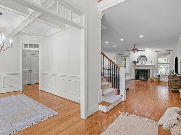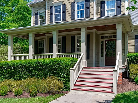 Meet 1 Amberglen Court. This charming colonial boasts 4 bedrooms and 3.5 bathrooms across 2924 square feet. Seamlessly blending contemporary architectural details and multifaceted outdoor spaces accented by quiet cul-de-sac living, this Durham darling is sure to impress! A cozy front porch welcomes you through the front door into a foyer of rich hardwood floors. The first floor is an entertainer's dream, with a bright formal dining room, a nearby dry bar, and an open-concept kitchen and family room. The kitchen is a chef's delight, with a downdraft cooktop, stainless appliances, and granite counters. Relax in front of the gas fireplace or step out to the screened back porch and the serenity of a generously landscaped, private backyard. Just off the family rooms sits an immaculate first-floor primary suite with tray ceilings and plentiful natural light thanks to large windows looking out over the backyard. The primary ensuite offers elevated finishes, with a spacious spa tub and granite double vanity. Upstairs beckons with three additional bedrooms with plush new carpet and two full bathrooms. Curb appeal is no item at 1 Amberglen, with mature trees in front of the home and a two-car garage around the side. All of this comes with the joy of the sought-after Treyburn community, close proximity to Treyburn Country Club, access to nearby walking trails and parks, the Eno River, and all that Durham has to offer!