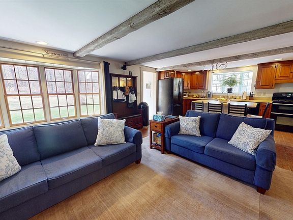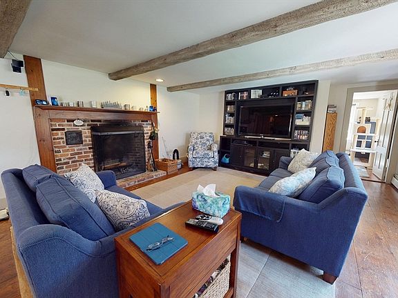 Lovely antique Cape retains all of the charm of long ago with it wide pine floors. Entertaining is easy in this open concept kitchen with island counter, recessed lighting and open to family room large fireplace and baywindow overing backyard. It's been skillfully updated with all the modern conveniences and systems so as not to compromise the ambiance of an American Classic Cape. 1st floor offers generouly porportioned rooms including a formal dining room, crown mouldings and wide pine floors, as well as a large 1st floor sun-lit bedroom with double closets, pine floors and windows to let the “sunshine in”. Enjoy crisp fall nights in the Hot Tub while listening to the sounds of nature. Have cookouts on the lovely fieldstone patio next to the covered porch. Conveniently located just minutes from the MA border, historic seaport of Newburyport and State and National parks. Two bedrooms upstairs along with a sitting area. This little town also has a private beach & boat launch.