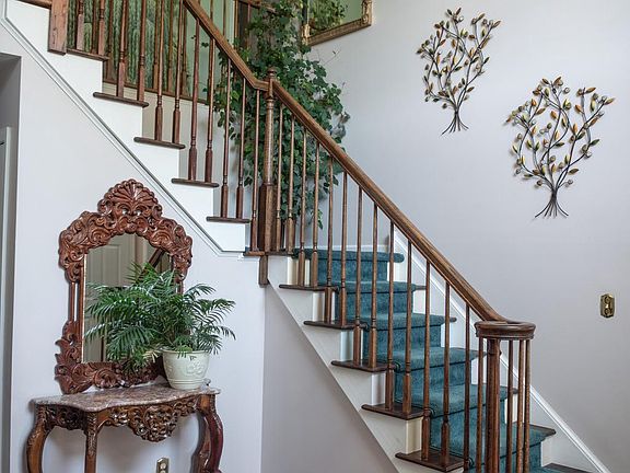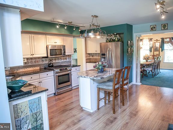 Beautiful, spacious 5 bedroom home set on two park-like acres on cud de sac. Gorgeous outdoor oasis with an Anthony Sylvan pool designed to look like a natural pond with grey coloring concrete interior. First floor Master Bedroom with sitting area offers a huge walk-in closet, master bathroom with Jacuzzi tub, shower stall, heat fan, linen closet, double vanities and separate water closet. Master bedroom also has built in speakers and a bay window. Two story foyer with hardwood floors, open turned staircase that's open to family room. Private first floor office with glass french doors off foyer and pocket doors off family room. The kitchen has granite counter tops, center island with breakfast bar, coffee bar, stainless steel appliances, under cabinet accent lighting, windows above corner sink, built in plate racks, and a walk-in pantry with plenty of storage for small appliances and dry goods. Two-story family room has a faux stone wall fireplace (wood burning), is wired for surround sound, has sliding glass doors to the deck. Mud room that flows into laundry room has access from garage and from the rear deck. 2nd floor loft area overlooks down onto the family room. 4 bedrooms on the second floor. Bedroom #1 offers a large walk-in closet, Bedroom # 2 offers a private balcony, Bedroom #3 offers hardwood floors, walk-in closets and plenty of natural light with 2 skylights. Bedroom #4 enters from the loft area. Walk-in attic storage on 2nd floor, and additional storage access by pull down attic stairs. No shortage on closets and storage in this home. Full Basement, poured wall concrete. Central vacuum, security cameras, sprinkler system, outdoor speaker system, recessed lighting, ceiling fans, water filtration system, field stone front facade, pool shed in pool yard, storage shed in back, 2 tier Trex deck, 3 car side entry attached garage with 220/40 amp outlet. Fios internet available. Lush, mature landscaping all around the home...a picturesque setting.