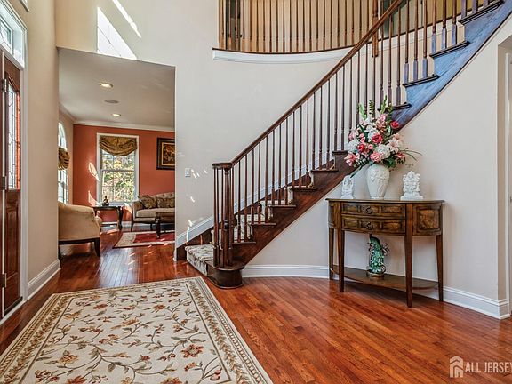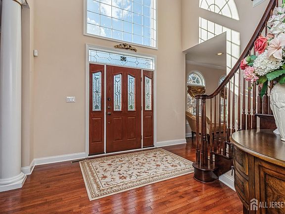 Welcome to 1 Angelo Ct, a beautiful home in Monroe, NJ, designed for both comfort and style. Situated on a corner lot, this 4-bedroom, 3.5-bathroom property combines a stately exterior with thoughtful interior features for modern living. As you enter, a grand Cinderella staircase makes a striking first impression. The main level includes French doors leading to a spacious office, perfect for remote work, and an impressive two-story family room with plenty of natural light. Elegant touches such as ceiling medallions, columns, hardwood floors, chair railing, and broad crown moldings add character to each space. The master suite is a true retreat, featuring a cozy seating area, tray ceilings, a shower stall, and a jacuzzi tub for a spa-like feel. The additional bedrooms include a convenient Jack-and-Jill setup and a princess suite, providing flexibility for family or guests. The home's walkout basement offers potential for future customizations, whether for additional living space, a home gym, or recreational areas. Outside, the stucco and stone front enhances the curb appeal, and the corner lot provides ample space for outdoor activities. 1 Angelo Ct blends luxury with practicality in a fantastic Monroe location. Don't miss the chance to make this impressive home yours!