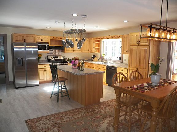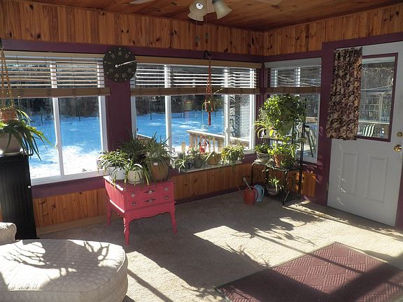 Open Concept design all on one floor living. Plus partially finish basement is ideal for retirement home or Buyer in need of minimal stairs. Beautiful location on a flat landscaped & wooded lot (only house on this private Road)! The 12.89 acres will allow you serenity and there is even a private target range on site. Wonderful for gardening bring the outside in with Sun Room and front and rear porches. You have a 2 bay garage detached and a separate detached heated garage with storage above. Home features 2 separate Kitchens on level one great for a "Kosher Kitchen" set up with 2 fridges. This custom design is well thought out and built with truss system framing and features radiant heat in the floor on basement and main levels. This is a must see! * Please note there is a 1500 gallon septic tank suitable for a 3-4 Bedroom Design but home only has 2 Bedrooms with closets and egress presently.