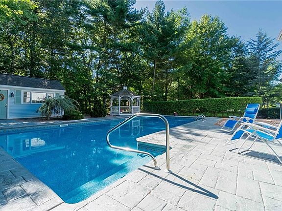 You have heard the expression, " Don't judge a book by its cover." This saying more than applies to this new style colonial. This home appears deceivingly small from the street; however, it is just over 3000 sq ft offering 4 bedrooms and 3.5 baths. It is the attention to detail that sets this home apart. From the window sizes and placements, to the ceiling variations, and to the quality of materials you soon realize this home is special. While not completely open, the floor plan provides such an easy flow through all the first floor living areas with access to the timber tech deck and two car garage. Enjoy the first floor master suite. The second floor provides a complete guest suite and two more bedrooms sharing a full bath. The beautifully landscaped yard features an in ground pool, gazebo, and pool house. Well maintained. New roof and resurfaced floors. Located in Trout Pond with easy access to shopping and highways. The current owners fell in love with this home and so will you.