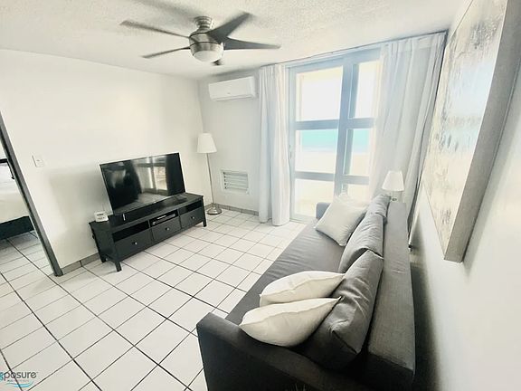 Experience island living in this one-bedroom, one-bath ocean-view condo on Isleta Marina, Fajardo. The king-size bedroom and living room with a queen sofa bed both open to a balcony overlooking the pool, athletic fields, and ocean perfect for morning coffee or sunset views. Amenities include a flat-screen TV, air conditioning, water, and DISH Network cable; electricity is not included. Boat shuttles providing access to the island. Ferry service runs Sunday to Thursday from 6 a.m. to 10 p.m., and Fridays and Saturdays from 6 a.m. to 11 p.m.; arriving an hour before the last ferry is standard. This tranquil retreat is available for long-term rentals only..