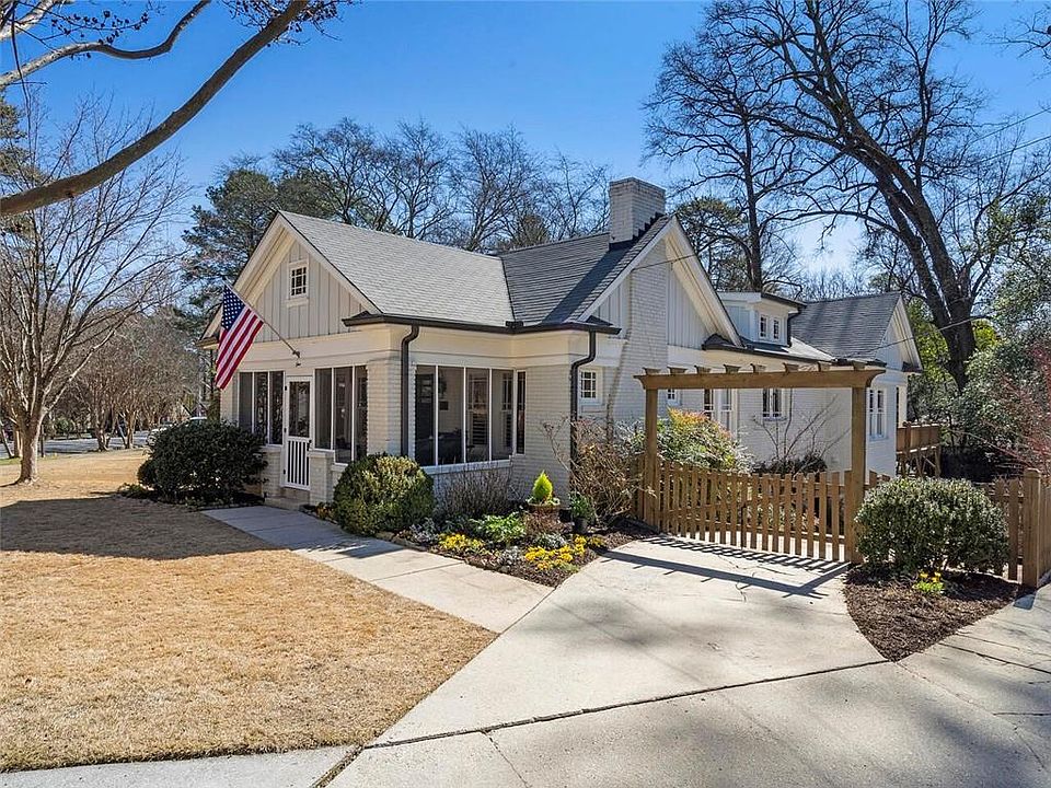 Quality abounds in this stunning 4 bed, 3 bath home situated on a sunny corner lot in Peachtree Park in the heart of Buckhead. Renovated and expanded in 2016 by Norris Broyles Architect and Macallan Custom homes, this home is complete with custom high-end finishes, yet still has all of its historical charm. Sellers spared no expense on this renovation and features include hardwood floors throughout, designer light fixtures and wallpapers, custom cabinetry, oversized windows in every room, vaulted ceilings, exposed beams, shiplap details, solid core doors, spray foam insulation and more. Welcoming covered front porch leads to a sunny, fireside front living room and separate dining room with wainscoting, Schumacher wallpaper and designer light fixture. One-of-a-kind, custom kitchen features a vaulted ceiling with shiplap accents, custom inset cabinets with quartz countertops, Thermador & Kitchenaid appliances, beverage refrigerator, and breakfast bar. Off the kitchen sits a beautiful family room appointed with a vaulted ceiling with shiplap accents and exposed beams, large windows, and French door to deck. Primary suite on main level also features tons of natural light, shiplap accents, vaulted ceiling, and French door to deck. Primary bath has marble tile floors, custom double vanity with quartz countertop, walk-in steam shower with built-in bench & walk-in closet with closet system. 2 sunny guest rooms share a hall bath and have tons of historical charm. Enjoy additional living space in one of the prettiest terrace levels complete with rec space, living room, guest suite, full bath, French doors to the backyard, and large unfinished area offering plenty of room for storage. Outdoor living space includes a large deck, turfed backyard, patio off the terrace level and covered front porch. Very social neighborhood with playground and garden, plus access to Beltline and walking distance to numerous restaurants, shops, Marta, Buckhead’s financial district, 5-star hotels & more. Peachtree Park is truly a unique neighborhood with strong community and tree lined streets yet right in the center of all the hustle and bustle of Buckhead. This home is located on the National Registrar of Historic Homes and is a treat to see.