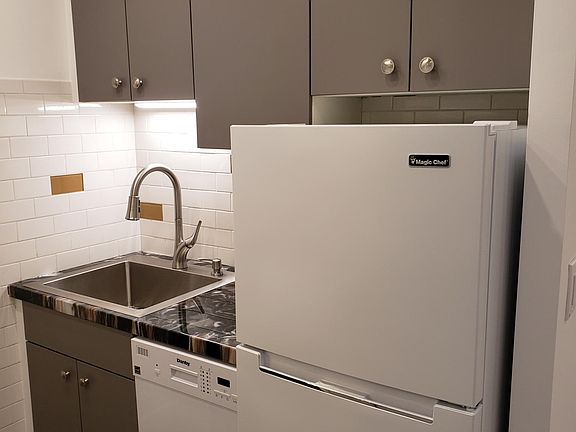 Newly renovated, modern studio in small, quiet apartment building. Very private. Includes washer/dryer, dishwasher, walk-in closet, private deck and entrance, central ac/heat. 1 yr. lease. Small pets ok. No smoking. Tenant pays utilities