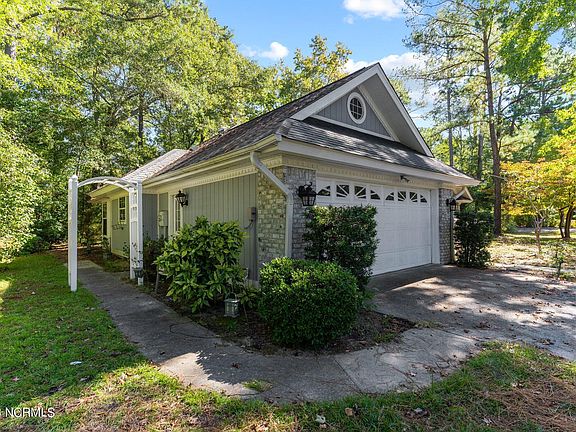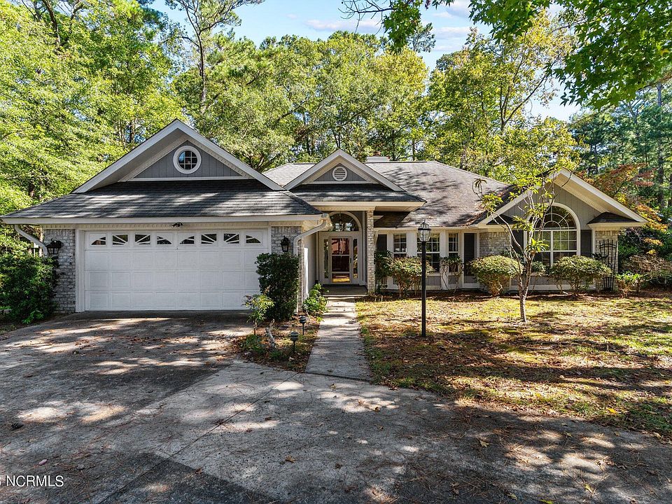 A fantastic opportunity awaits in the golf course community of Carolina Shores situated on a large corner lot with a circular driveway. With minimal TLC, this home will become a great investment for someone with vision. The soaring vaulted ceilings in the living room with windows are the star of the show. Entering through the two car garage, the laundry room and kitchen greet you with a great breakfast nook. There are two bedrooms with a large den off the living room. This home is priced to sell with repairs built in mind. Minutes from beaches, golf, shopping and restaurants.