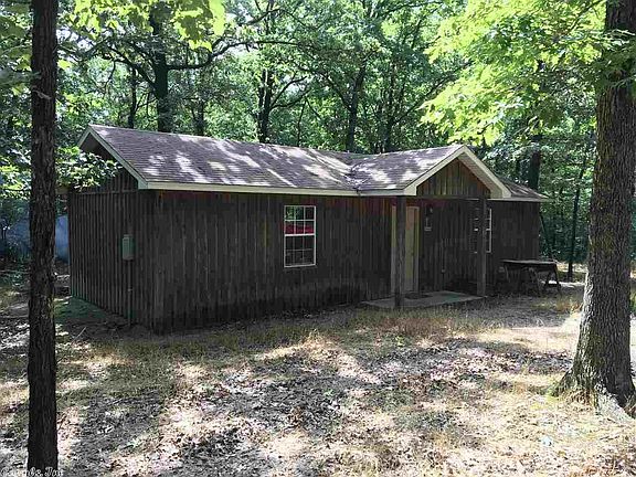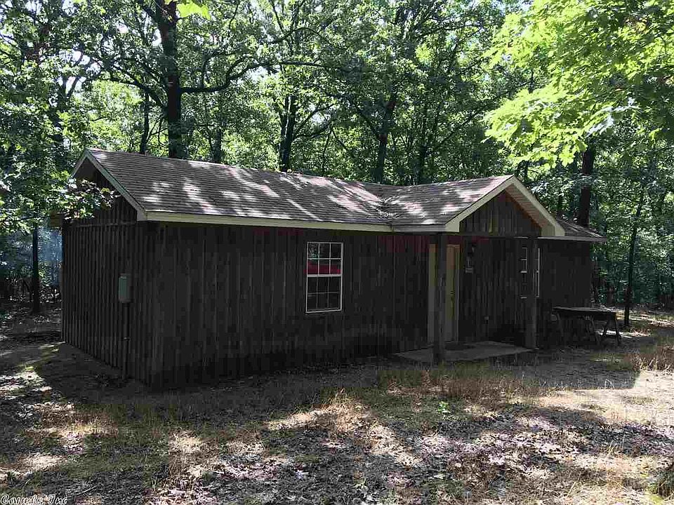 Cute Cabin with Armadillo Road frontage, hunters dream, hunt 600 + acres and fish in a stocked lake with a large dock area and picnic area to enjoy.This home has Grange Calamine Rural water and NAEC for electric.Cabin has a large living room, nice kitchen, large bedroom with a full bathroom.Kitchen does not have a cook stove but one could be installed.Nice wooded acres with shooting rest in the windows of the cabin.Heated and cooled by a unit in the wall.Floors are nice. There is also a storage building.