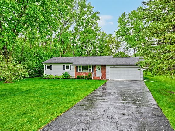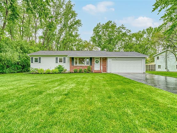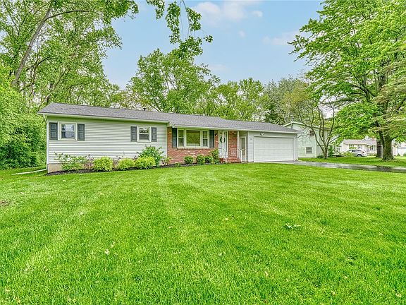 Lovingly maintained by its original owner, this impeccable 3-bedroom ranch offers a rare opportunity to own a home where every detail has been cared for with pride. Perfectly positioned at the end of a quiet street in the Town of Gates, this private half-acre setting offers a peaceful retreat with minimal traffic—ideal for those who value both serenity and convenience. Step inside to discover a space that immediately feels warm and welcoming. The sunny living room features a large picture window that fills the space with natural light, highlighting the gorgeous hardwood floors that continue throughout much of the main level. The heart of the home is the spacious eat-in kitchen, perfect for everyday meals, and the formal dining room that offers the ideal setting for hosting larger gatherings. The updated bathroom feels fresh and luxurious, complete with a deluxe tiled walk-in shower, tile flooring, a white vanity with quartz top, and modern fixtures. The floor plan is smart and efficient, offering easy flow and functionality. Downstairs, you’ll find a finished rec room—a perfect spot for a home office, workout area, or cozy hangout space. There's plenty of storage throughout the full basement, adding to the home’s practicality. Major improvements have already been taken care of, including vinyl windows, vinyl siding, an architectural roof, gutter guards and a high-efficiency furnace with central air. The mechanicals are in excellent shape, offering peace of mind for years to come. Step outside to a backyard designed for relaxing and entertaining. The covered patio is perfect for summer dinners, morning coffee, or just enjoying the peaceful surroundings. The large 2-car garage and double-wide driveway make coming and going easy, while the exceptional yard completes this move-in ready package. Located close to shopping, schools, restaurants, and expressways, this home offers the perfect blend of privacy and accessibility. Homes like this—where location, care, and comfort come together—don’t come along often. Delayed negotiations Tues 6/3/2025 at 12 PM.