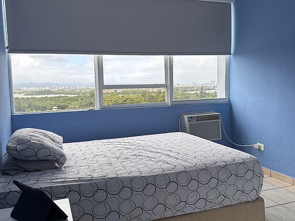 Live just 6 minutes walk away from the Isla Verde beach door to sand. This high floor apartment has approximately 1,300 square feet divided into 3 bedrooms, 2 bathrooms, open kitchen connecting its living & dining room areas and a private balcony facing the mountains,lagoon and city. Apartment comes fully furnished and equipped with new smart refrigerator, stove, new washer/dryer, a/c units / new large 65 inch Samsung tv and 1 uncovered pkg space. The condominium has unique recreational facilities including an almost olympic size swimming pool, children's pool, gazebos, bbq area and basketball court. Mundo Feliz has 24/7 security, water cistern and a generator for common areas. Available: Immediately. Monthly Rent: $2,300 utilities not included. Call us for a viewing asap. January 1 move in date. Private Showings. Close to everything 5 min walk. Restaurants, bars, casinos, car rental, cvs/Walgreens and food shopping. Especially the beach! Highway entrance/exit real close too. Near airport so great for travelers. You can actually survive over here without a car as well. Renter is responsible for utilities: electric and water.and internet Rent is $2300 a month $2500 security deposit Can do minimum of 6 months but we typically like to do a year lease. No Airbnb or short term rentals. Building is very strict! Rental of apt includes gatEd secured parking, pool club/bbq/recreational facilities. Doorman/security agent always on 24/7 Apt Is furnished and left enough space for you to add something if you wanted to.
