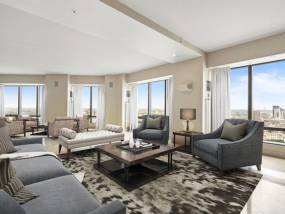 Ritz Carlton Penthouse w/ 5 Bedrooms & Showstopping Views. Live, work & play from this private residence w/ large terrace & rooms for office & home gym. 1 of only 2 units on the 37th floor, this private residence has 10' ceilings & walls of windows overlooking Boston. Gracious foyer leads to large living room w/ 2 seating areas & gas fireplace. Formal dining room is ideal for entertaining. Kitchen w/ breakfast bar steps onto 500+ sq/ft private terrace overlooking Beacon Hill & Back Bay. Huge primary bedroom suite w/ City & Harbor views, 2 marble baths & 5 custom closets. Adjacent room makes ideal study or nursery. 3 additional bedrooms each w/ en-suite bath are perfect for guests or creating home gym, media room or home office. 3 valet parking included. Doorman, Concierge, Equinox Sports Club & all the services of the 5 star Ritz Carlton Hotel, including fine dining at Artisan Bistro & Avery Bar. Steps to theaters, fine dining & all that Boston has to offer.