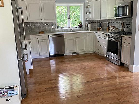 Sprawling Sun-filled Ranch in Canterbury Estates! Step inside this beautifully updated home offering a terrific open floor plan; 2 large bedrooms, 3 baths, gleaming wood floors, bright white kitchen with tile backsplash, Quartz countertops, SS Kitchen Aid appliances, young windows (with Plantation Shutters), roof & tankless water heater and furnace! First floor Laundry with Maytag W/D. Gorgeous bonus room addition features high ceiling, gas fireplace surrounded by custom built-ins, wall of windows framing front yard and Bluestone covered porch. Ceiling fan, Velux skylight and oversized slider to back porch and yard. Tiled mud room & first floor laundry off the 2 car oversized garage and a potting room with sink. Master bedroom has private full walk in shower & wall to wall carpet. Huge unfinished basement. Level corner lot, central air, gas heat, gravel driveway accented by cobblestones. Convenient location close to restaurants, stores and major routes.