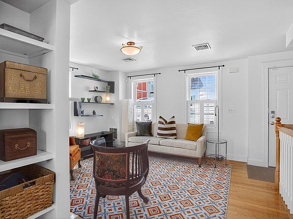 Striking Single Family Home! Quintessential Warmth & Charm throughout this circa 1845 Worker's Cottage nestled on a private lane. East to West Sunshine with windows on three sides! Embracing formal living room with wood-burning fireplace! Bright & Airy renovated eat-in kitchen with granite countertops, abundant cabinetry & stainless steel appliances! Perfect for entertaining with direct access to a wonderful sun-drenched deck overlooking your beautiful enclosed courtyard! Top floor primary bedroom with ensuite bathroom and a large separate office/nursery! Amazing Skylights! Garden-level guest bedroom with flexibility to use as a family room. Another full bathroom on this level. Impressive Sunny brick courtyard for the avid gardener and grilling enthusiasts! Additional features include newly repainted interior, a full-size laundry area, a new heating and cooling system, and a 6 year old roof! Extremely Comfortable living on multiple levels - perfect for working from home!
