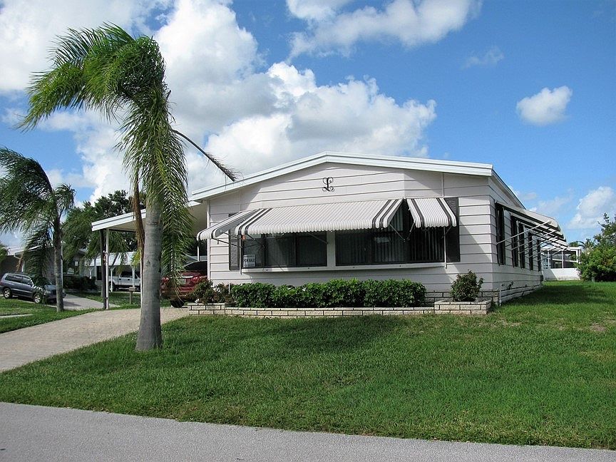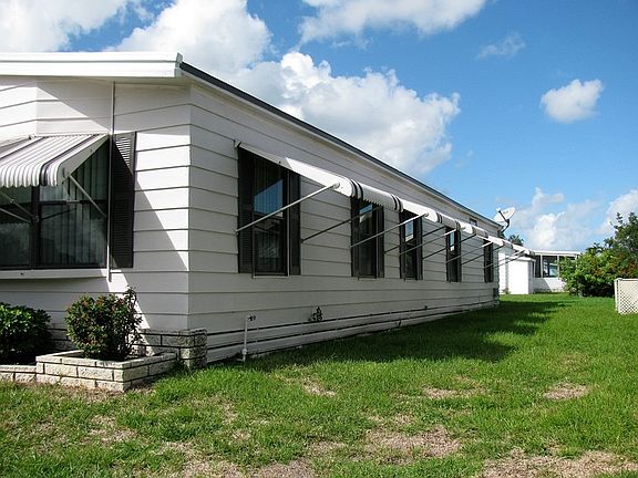 THIS IS A MANUFACTURED HOME ON LEASED LAND. WHY WAIT FOR THE SEASON TO COME??? OWNERS HAVE DECIDED TO JOIN FAMILY OUT OF STATE AND ARE ANXIOUS TO SELL! THIS BEAUTIFUL HOME IS ON A LARGE CORNER LOT NEAR THE ENTRANCE AND CLUB HOUSE OF THE PARK IN THIS ACTIVE 55+ GOLF COMMUNITY!! GREAT "PEEK A BOO" OF THE LOVELY LAKE AND SO CLOSE TO EVERYTHING! THIS LARGE HOME FEATURES; -GOLF CART -2 LARGE SHEDS FOR STORAGE WITH ELECTRICITY -LONG CARPORT WITH CUSTOM PAINTED DRIVEWAY -SCREENED IN LANAI WITH NEWER VINYL WINDOWS -VIEW OF THE LAKE FROM LANAI AND FAMILY ROOM -GALLEY KITCHEN WITH NEW STAINLESS STEEL FRIDGE -DINING ROOM HAS BUILT IN HUTCH FOR DISHES OR COLLECTIBLES -ALL APPLIANCES INCLUDED -NEW LAMINATE FLOORS EXCEPT BEDROOM AREAS THAT HAVE NEWER CARPET -NEWER FURNITURE IN LIVING ROOM AND GUEST BEDROOM -NEW FRONT DOOR - NEW AIR CONDITIONER IN LANAI -ROOF HAD INSPECTION AND WAS RECENTLY SEALED FOR LEAKS -NEW TOILET IN GUEST BATH -LARGE MASTER BEDROOM WITH BAY WINDOWS , WITH HUGE WALK IN CLOSET AND MASTER BATH WITH WALK IN SHOWER -GUEST BEDROOM LARGE ENOUGH WITH FOR A QUEEN SIZE BEDROOM SET, WALL TO WALL CLOSET FOR EXTRA STORAGE -GUEST BATH IS LARGE WITH TUB/SHOWER COMBO AND PLENTY OF STORAGE -SEPARATE LAUNDRY ROOM WITH WASHER /DRYER AND HUGE CLOSET...ENTRANCE TO LANIA -HOT WATER HEATER 2017 -ELECTRIC WIRING CHECKED AND PASSED INSPECTION -ALL RECEIPTS AVAILABLE FROM OWNERS THIS HOME IS LOCATED IN AN ATTRACTIVE ADULT 55+ GOLF COMMUNITY AND COMES WITH A 24 HOUR SECURITY PATROL. SPANISH LAKES COUNTRY CLUB IS CONVENIENTLY LOCATED NEAR US-1 AND THE TURNPIKE FEEDER ROAD. THIS HOME IS IN A "NO PET ZONE" WHICH BASICALLY MEANS NO DOGS EXCEPT CERTIFIED COMPANION DOGS. OWNERS CAN TAKE ADVANTAGE OF THIS SPANISH TUDOR CLUB HOUSE WITH LARGE SCREENED TV, GYM, POOL TABLES, LIGHTED TENNIS COURTS, BOCCE, WORKSHOP AND SO MANY ACTIVITIES MONTHLY. GOLF COURSE IS FREE TO OWNERS. CLOSE TO I-95 TO AREA AIRPORTS, SHOPPING, RESTAURANTS, BEACHES AND FLORIDA ATTRACTIONS. THIS IS A COMMUNITY THAT RESIDENTS MUST BE PARK APPROVED. THE APPLICATION IS $75PP AND REQUIRES FINANCIAL (PERFECT CREDIT NOT REQUIRED), INCOME VERIFICATION AND FELONY CRIMINAL BACKGROUND CHECKS.