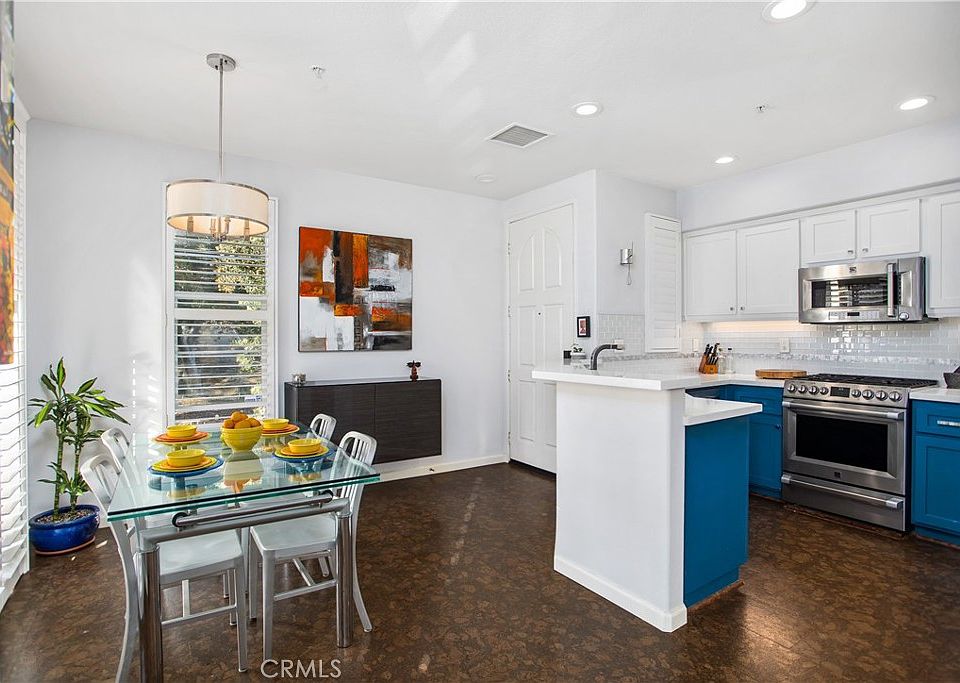Prime end unit location with its own garage and assigned parking space. This 1 bedroom 1.5 bath layout is modern, peaceful, and move in ready. The loft area is versatile and can become a home office, a guest bedroom, a hobby room, or whatever suits you best. Loads of natural light will help brighten your days, while window shutters throughout provide an elegant way to power down for privacy. Being an end unit, you’re reminded of the beauty that surrounds you when staring out the many windows in this home. Some upgraded features include quartz counters, a full backsplash, stylish shaker cabinets, a large undermount sink, and stainless steel appliances. Both the downstairs bathroom and upstairs primary bathroom have been tastefully remodeled. Eco-friendly cork flooring is found throughout the entire home, giving you a natural and warm aesthetic. You’ll appreciate having an inside laundry area upstairs vs down. And you’ll love the added flair of a wall-mounted electric fireplace with mantel in the primary bedroom. This home is attractive and will captivate you from the moment you step inside. It flows well and you’ll quickly sense this is the right place to call home. Let's not forget, this home provides you access to the extensive list of amenities that Ladera Ranch has to offer. Multiple clubhouses, pools, splash pads, playgrounds, pet friendly parks, basketball, pickleball, tennis, volleyball, disc golf, skate park, community gardens, picnic areas, and of course - scenic walking, hiking, and biking trails to explore. Conveniently located near shopping, dining, entertainment, and top rated schools, this condo offers an incredible balance of convenience and tranquility. Make this home yours and enjoy your slice of paradise in Ladera Ranch.