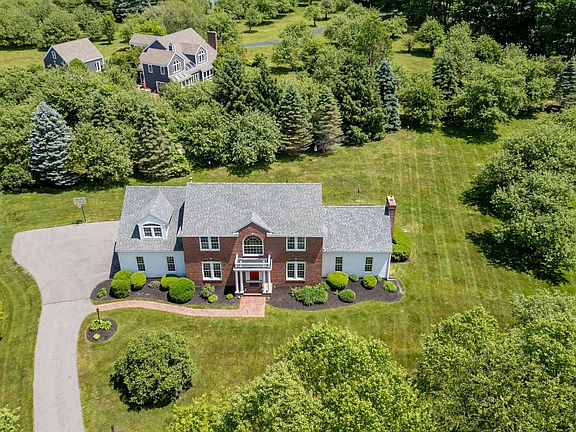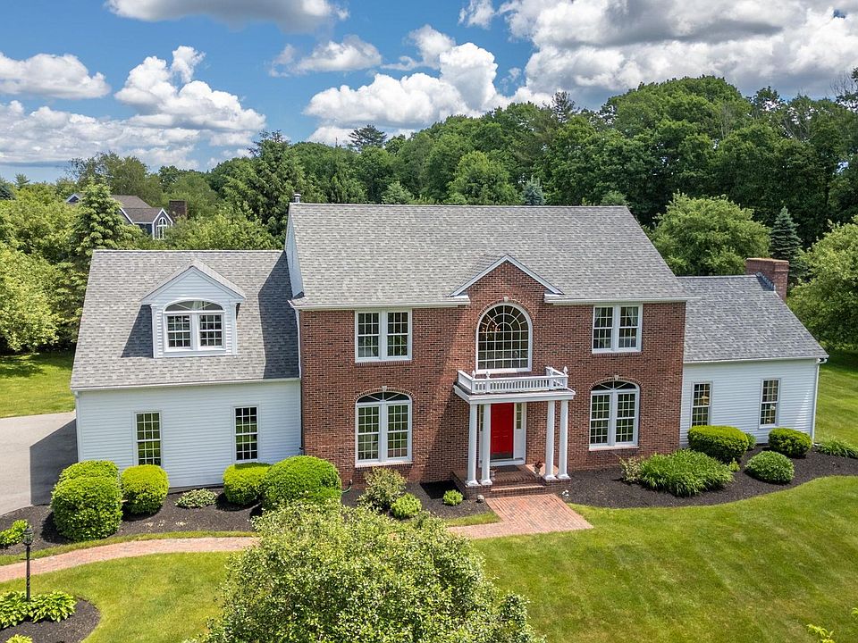 WELCOME HOME to 1 Baldwin Place, located in one of the most beautiful areas in Hampton Falls. Privately nestled on a 2 acre corner lot, you will find this home perched up on a knoll surrounded by a canopy of trees & rolling stone walls; this home exudes curb appeal with its stately presence. Inside you are greeted with a soaring foyer with an elegant dining room and fireplaced living room flanking the impressive staircase, all brightly lit with the oversized Palladian and floor to ceiling windows. The large, well appointed kitchen flows beautifully as the focal point of the open concept floor plan, perfect for entertaining friends & family coupled with the impressive “great room”. Out back is a private, relaxing stone patio equipped with a brick outdoor fireplace & built-in gas grille, all surrounded by professional, mature landscape. The bright, oversized screened porch is perfect for enjoying a meal or reading a book. Upstairs find 3 large bedrooms plus an exceptional primary suite complete with his & hers walk-in closets, cedar closet and oversized bath with a tiled steam shower. The beautifully finished basement is the perfect added space complete with a large bonus room with fine crafted built ins & wet bar, office & ¾ bath; perfect for guests, teenagers, or a quiet retreat. This home has been impeccably maintained & cared for & is absolutely stunning. Located just a short commute to local beaches and Routes 95, 101 and 495, and only an hour from Boston!