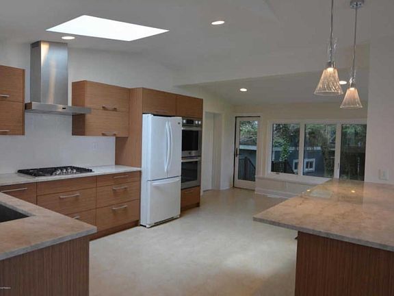 Captivating unobstructed views of new York skyline, Verrazano bridge, sandy Hook from every room and glass railed deck. Welcoming,modern, newly renovated inside out 2 bedroom, 2 full bathroom ranch Huge master suite with panoramic windows,master bath including jetted bath overlooking bay, glass shower, bidet, towel warmer, double sink vanity, walk-in closet. Vaulted ceiling throw out, full of light and open space. New contemporary kitchen with exotic Taj Mahal quartzite countertop, water filter, double oven, dishwasher, hood. Brazilian teak hardwood throughout. All new 2 zones heating , cooling , air ducts system, foam insulation throughout make house very energy efficient and ecologically friendly. Finished walk out room on lower level potentially creates recreation or office space. Washer and dryer on lower level. 2 car attached garage. Paved driveway with plenty of parking . Located on uniquely private, quiet,dead end street,. Easy commute to New York via Seastreak ferry located in less then 5 min drive. Newly renovated marina is paradise for boat lovers. Tenant is responsible for utility bills,lawn maintenance, snow removal.owner is responsible for garbage and recycling removal