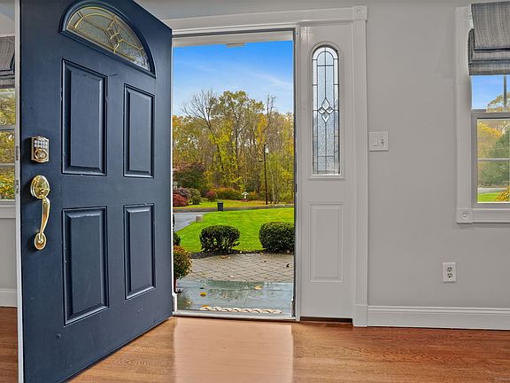 4-bedroom, 1.5-bath updated Contemporary Colonial on a level one-acre corner lot with fenced above-ground pool. This home features classic architectural details, new landscaping, a custom stone entrance, and hardwood floors throughout. The renovated eat-in kitchen includes a farmhouse-style sink from Italy, stainless steel appliances, quartz counters, brick backsplash, and a large center island with breakfast bar. The open floor plan provides natural light, a formal dining room, and a spacious living room with fireplace and sliders to the back deck and pool area. A powder room completes the main level. Upstairs offers a large primary bedroom with dual closets, three additional bedrooms, and a full bath. The unfinished lower level provides storage space. The backyard includes a fenced pool with new liner, freshly painted deck, stone walkway, and private lawn. Additional features include central AC, natural gas heat, generator hookup, paved driveway, two-car epoxy garage, and storage shed. Convenient location near shopping and restaurants. Improvements (since April 2024) New roof New furnace New Air conditioner unit New water heater New water filtration system Entire inside repainted Painted deck Recessed lighting installed Cameras and security system Invisible Fence