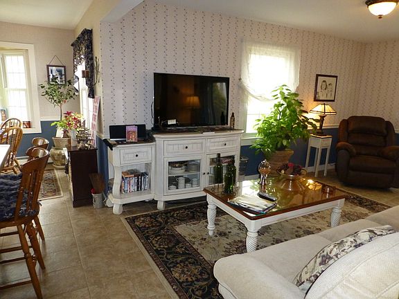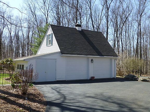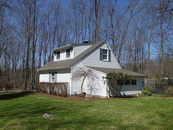 The property has the charm of a New England styled Salt Box Colonial located on 1.87 level acres with an oversized 2 car garage, attached workshop area & loft above. This 4 bedroom, 2 1/2 bath homewith a knotty pine finished basement with outside access to the backyard is great for entertaining as well. The septic has been inspected and pre certified, the roof and most windows have been replaced and the flower garden is ready to bloom. The driveway was paved within the past 10 years, along with newer hardwood floors, tiled kitchen/ dining room floors ,carpet in 4th bedroom on stairs & hallway on the second level. An above ground oil tank has recently been installed and the front bluestone walkway was added a few years ago leading up to the portico and newer front storm door. Make this house your home!